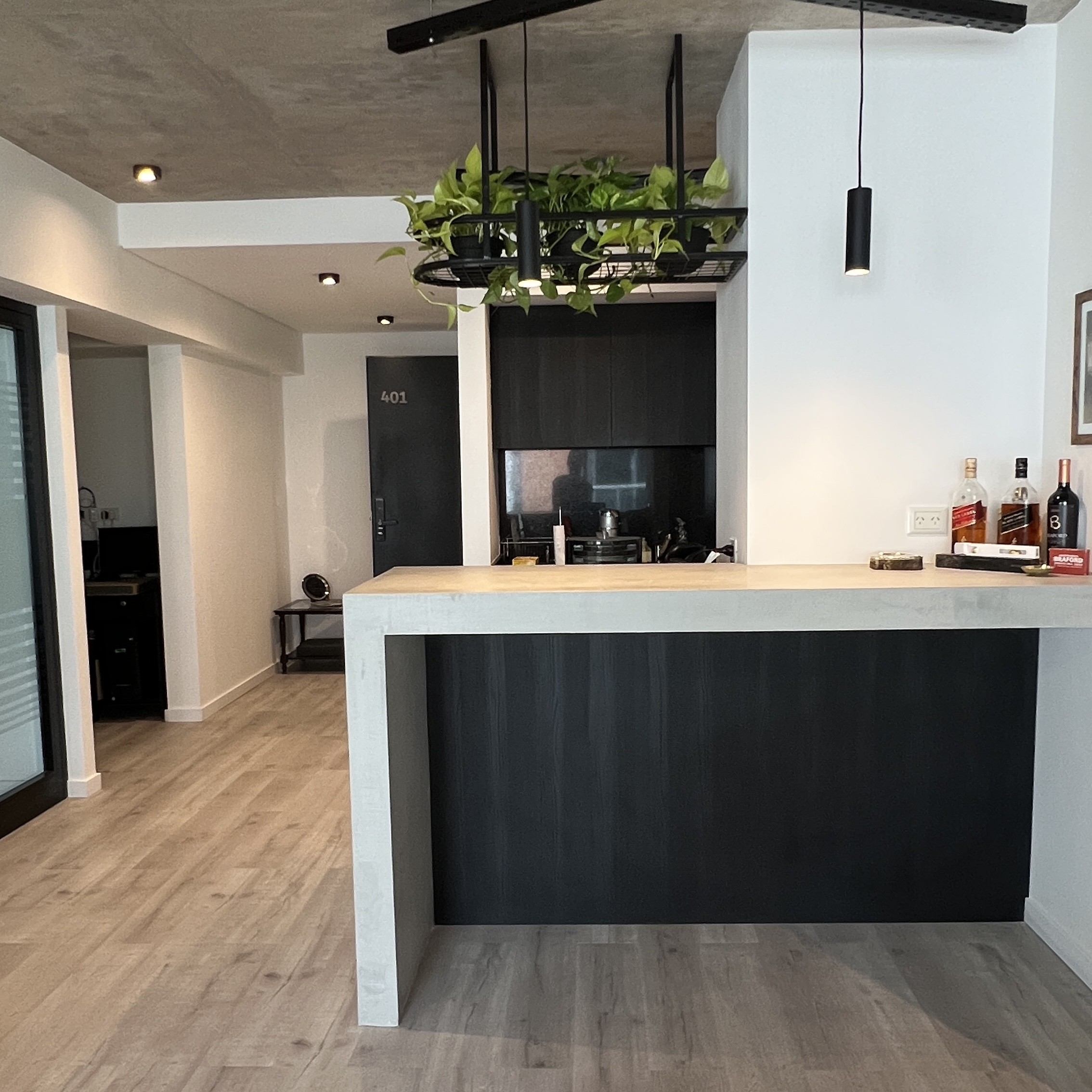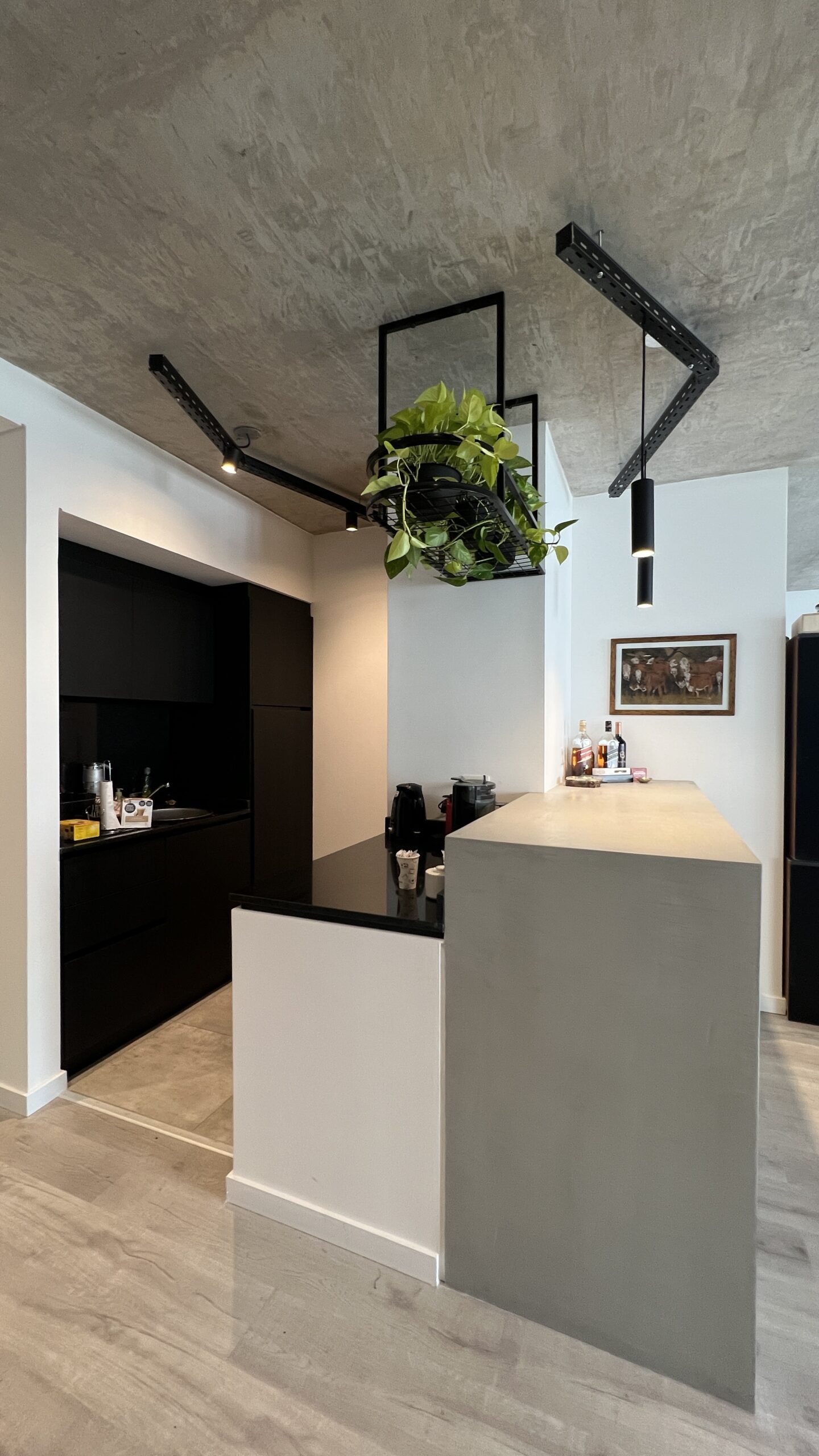 Se nos solicitó trabajar bajo presupuesto preestablecido y con plazos de ejecución ajustados. Optimizamos cada recurso para lograr un diseño funcional, bien equipado y con detalles como la estructura metálica con vegetación en la cocina, que aporta calidez al espacio.